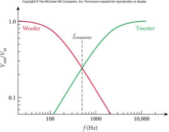 Uma maneira de melhorar o desempenho de um sistema de áudio é enviar as altas frequências para um alto falante pequeno denominado tweeter, e as frequências baixas para um alto falante grande chamado woofer. Um circuito misturador simples que distribui essas frequências. O circuito é composto de um filtro passa-alta RC e um filtro passa-baixa RL, ligados em paralelo com a saída do amplificador áudio. Os alto falantes comportam-se como resistores. A capacitância e a indutância deste circuito misturador são C = 10,0 μF e L = 10,0 mH. As resistências são R. 8,00 Ω.