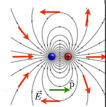 •tem a direção e sentido do campo elétrico externo ao dipolo.