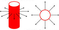 Além da superfície DIMINUI com o recíproco da distância ao centro do cilindro.